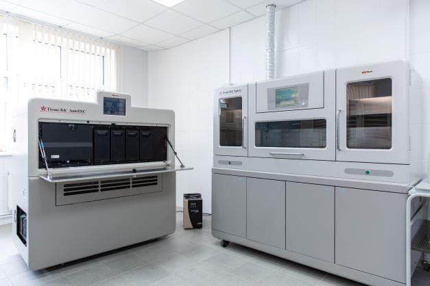 Отделение клинической патоморфологии в максимально короткие сроки выполняет гистологические, цитологические и цитогенетические исследования на современной уникальной автоматизированной технологической базе.